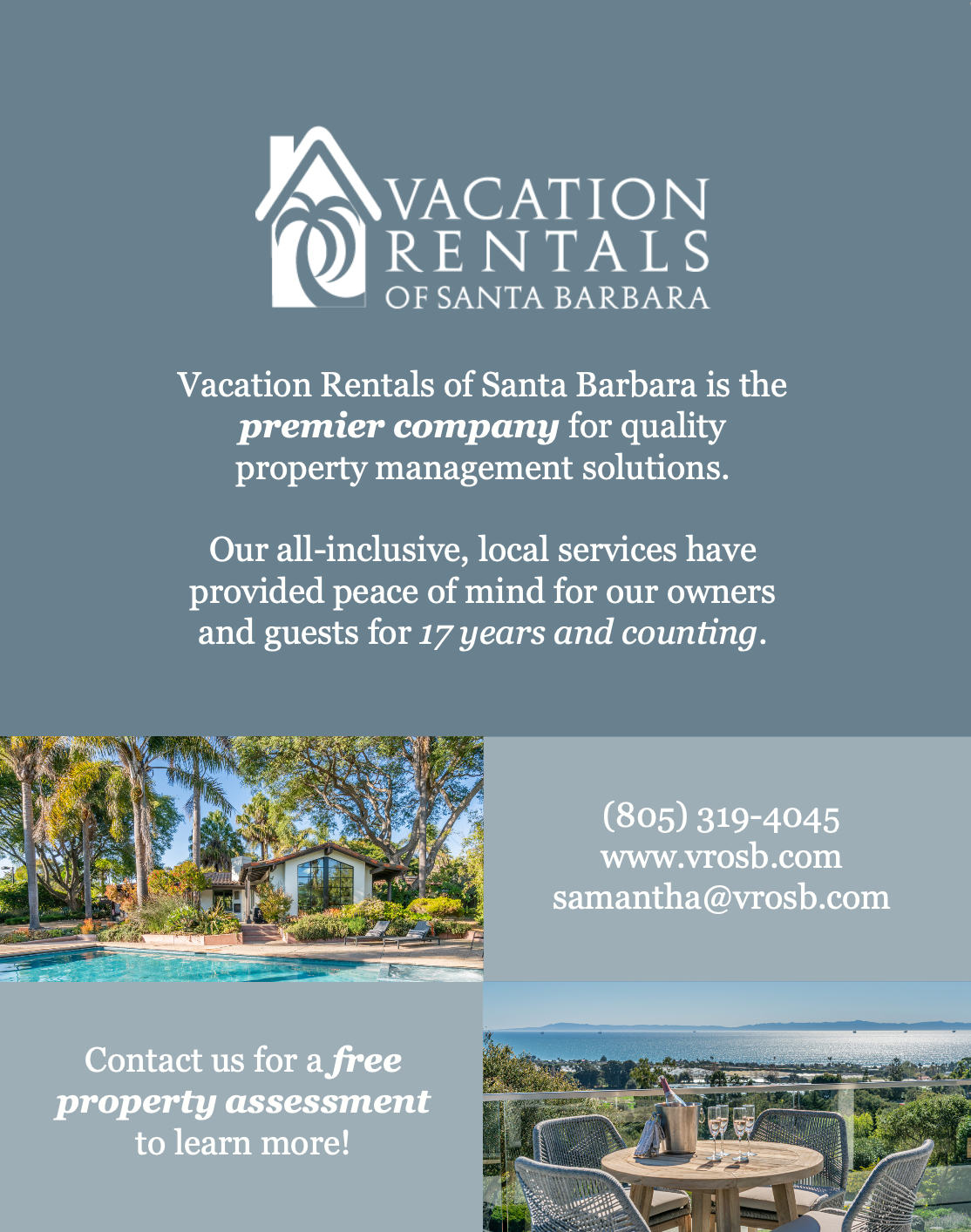 Vacation Rentals of Santa Barbara is the longest established vacation rental agency in the Santa Barbara area. For this project, the company owner hired me as lead designer to design a variety of print collateral, including brochures, magazine advertisements, and a banner. I sought feedback from my client and worked to ensure that her goals were met and that the end products were cohesive with existing brand materials.